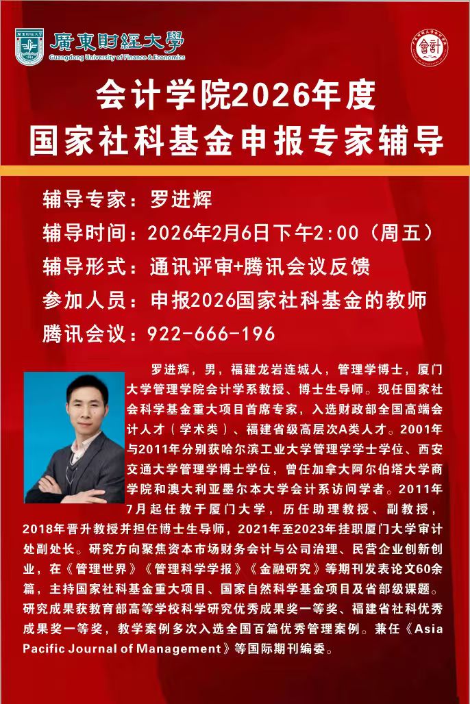 主题:会计学院2026年度国家自然科学基金申报专家辅导